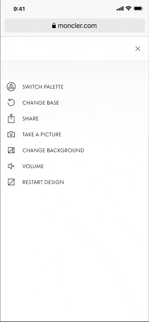 COLOUR PALETTES: Users had to chose from one of four distinct colour palettes created by Moncler, each with countless inventive design combinations that on some scenarios were linked to a styling colour.