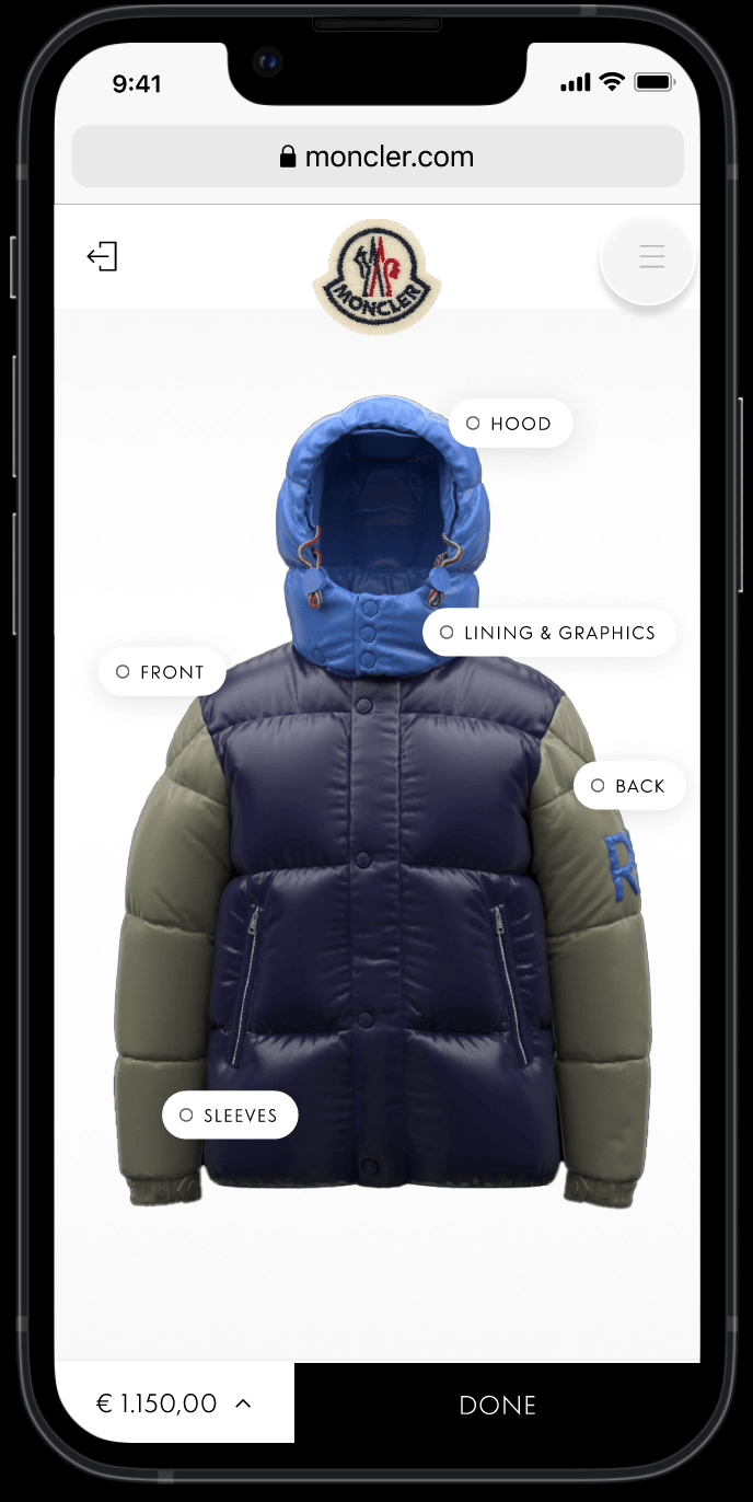The most difficult part of the configuration experience was to simplify the stylistic choices created by Moncler’s fashion team.